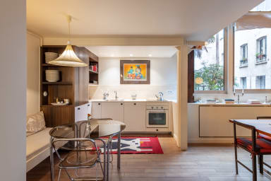 Welcome to your peaceful retreat in one of Paris’s most vibrant neighborhoods. This two-bedroom duplex, inspired by 1970s interiors, blends retro charm with modern comfort. Tucked away from the street and overlooking a quiet courtyard, the apartment offers a serene escape in the city. Just steps from Canal Saint Martin, you’ll be surrounded by Paris’s best restaurants, cafés, and boutiques.