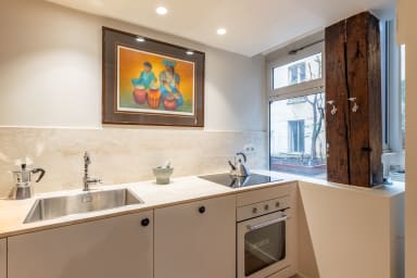 The apartment is furnished with antique, carefully sourced pieces and delicate designer furniture. It is therefore best suited for respectful and attentive guests who will take great care of the space and its furnishings.